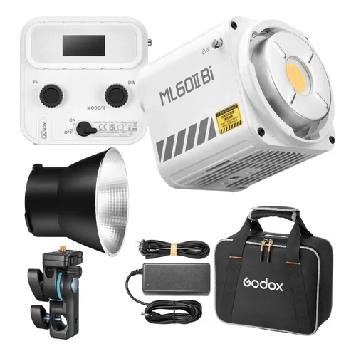 A Godox expande sua linha de monolights LED com o ML60IIBi Bi-Color LED Monolight com Kit de Punho de Bateria AK-B01 . Com uma atraente estrutura branca, o ML60IIBi oferece a flexibilidade bicolor do ML60Bi anterior, em um equipamento compacto e altamente portátil, projetado para disparos rápidos. Ultraleve, com apenas 450 g, o ML60IIBi permite configuração e operação rápidas, mesmo com apenas uma mão. Outros benefícios incluem opções de alimentação CA ou por bateria para trabalho em estúdio ou em locação, além de uma ampla gama de acessórios disponíveis separadamente. Onde quer que você vá, o ML60IIBi proporciona uma saída brilhante e efeitos dinâmicos às suas fotos. Esta versão vem com um punho de mão AK-B01 que aceita duas baterias NP-F disponíveis separadamente para operar o equipamento em campo.