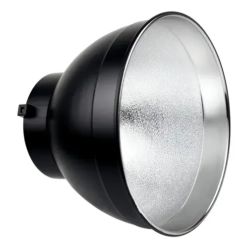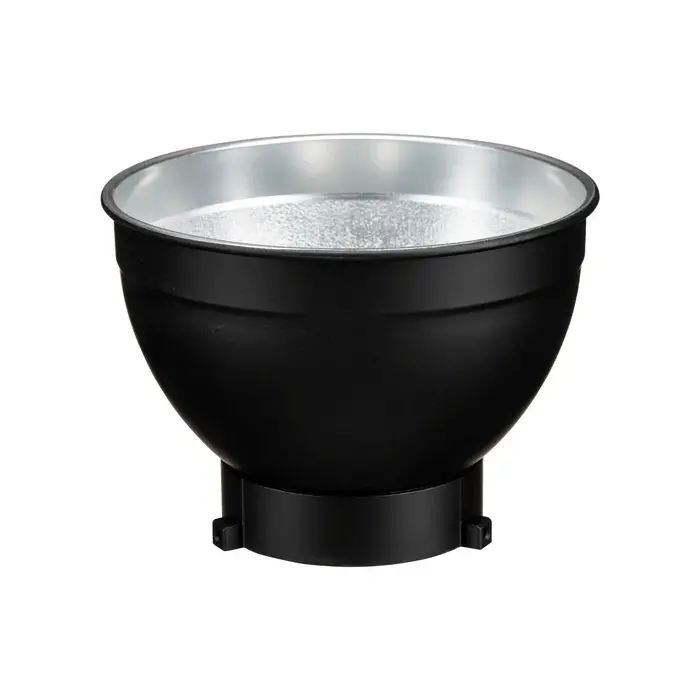 O Refletor conta com encaixe do tipo padrão bowens para ser usado em flashes, tochas de estúdios fotográficos.